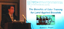 Matthew L. Riegert, one of Tech's primary odor trainers, has far-reaching experience working with odorants and the sources that emit them. He has trained hundreds of people in the fundamentals of odor generation and odor chemistry, odor complaint response, and odor control basics. Mr. Riegert often screens facility employees, community responders, and others for odor sensitivity. He has also made several conference presentations on the topics of odor control and odor training, including recent speeches at the SWANA LFG symposium and the annual gatherings of NEWEA and NYWEA.