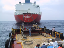 The Northeast Gateway LNG Project is the first deep-water offshore LNG port (DWP) on the east coast, and is proposed for a site 12 miles off the coast of Cape Ann, Massachusetts. Specially-designed LNG tankers, Energy Bridge Regasification Vessels (EBRV), would dock at this port; LNG cargo would be vaporized on-board and then piped through a flexible riser to the pipeline end manifold (PLEM) on the sea floor that connects to the Hubline pipeline. In support of the project permitting efforts, Tech Environmental engineers collected sound level measurements of the underwater and the in-air sound generated by the specially constructed EBRV during LNG regasification, and the offloading operations that are located 117 miles offshore in the Gulf of Mexico at an existing DWP.