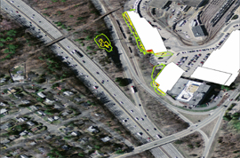 Residents near the proposed Riverside Project were concerned about reflective noise impacts from I-95/ Rt.128. Tech was retained by The Walsh Company LLC to conduct an acoustic modeling study. Tech was asked to confirm that noise from I-95/Rt.128 traffic reflecting off of new project buildings would not result in excess increases in reflective sound or produce “pure tone†conditions. Tech used peak hour traffic data collected from I-95/Rt.128 and projections provided from the project team for the new ramps and roadways to determine the traffic noise. The traffic noise was predicted into the neighborhood of concern via a 3-dimensional acoustic model. This work was similar to what tech often does to predict the benefit of highway noise barriers, only in reverse this time. The reflective nature of the new buildings would not significantly increase sound in the neighborhood of concern because of topography, traffic volumes and proximity to sound sources. Tech successfully demonstrated that the Project would not result in detectable sound increases in the neighborhood of concern.